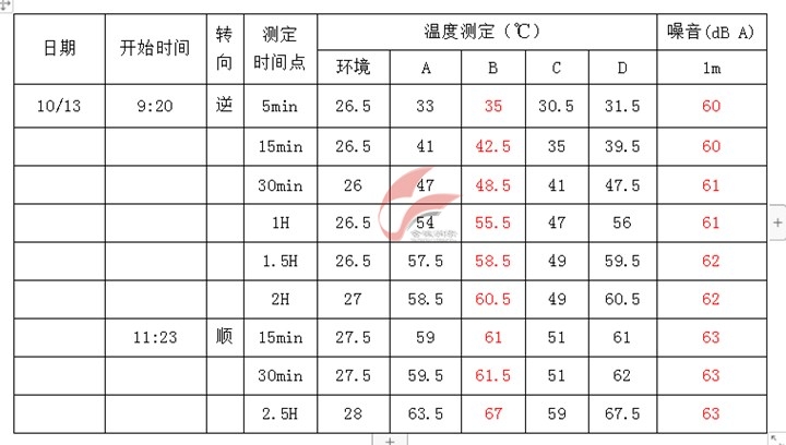 测试过程:减速机类型:斜齿(加脂量:25g)