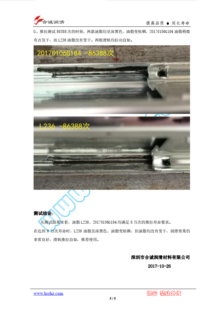 ※、产品与塑胶轮做兼容性测试,首先保证油脂与塑胶轮不产生化学反应;